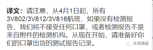 4月1日起,開始海關(guān)也將會(huì)嚴(yán)查!空海運(yùn)等需要正式報(bào)關(guān)的防疫物品,都要送檢,送檢達(dá)到國(guó)家標(biāo)準(zhǔn)才能出口。