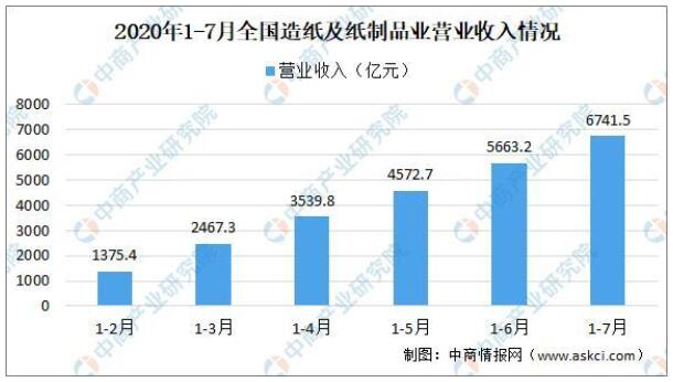 從行業(yè)效益情況來看:數(shù)據(jù)顯示,2020年1-7月,全國造紙及紙制品業(yè)營業(yè)收入6741.5億元,同比下降7.9%;利潤總額331.9億元,同比增長5.5%。