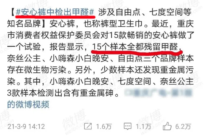 對(duì)于此次風(fēng)波,衛(wèi)生用品協(xié)會(huì)也出面為以上品牌“伸冤”,并給出了具體說明,強(qiáng)而有力地回?fù)袅?ldquo;標(biāo)題黨”。.jpg)