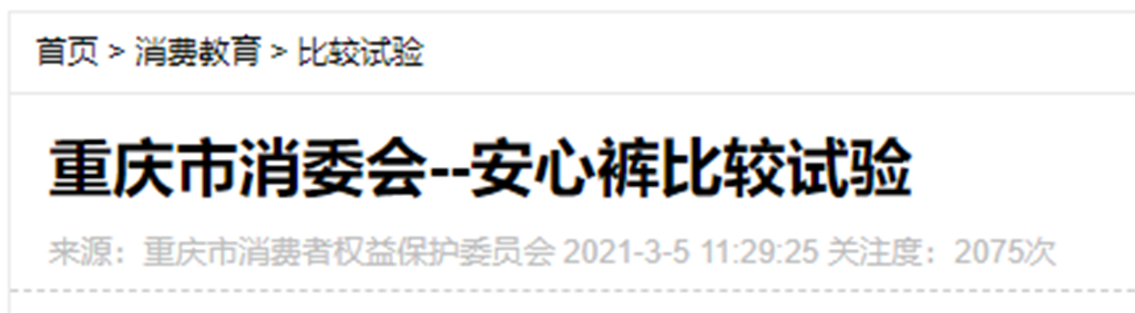 經(jīng)過深入了解,發(fā)現(xiàn)重慶市消費(fèi)者權(quán)益保護(hù)委員會(huì)的確曾經(jīng)發(fā)布過關(guān)于安心褲的檢驗(yàn)結(jié)果,此次對(duì)目前市場上比較暢銷的15款安心褲開展了比較試驗(yàn),主要對(duì)安心褲的衛(wèi)生性能、安全性能、功能性指標(biāo)、舒適性指標(biāo)等進(jìn)行測試。.png)