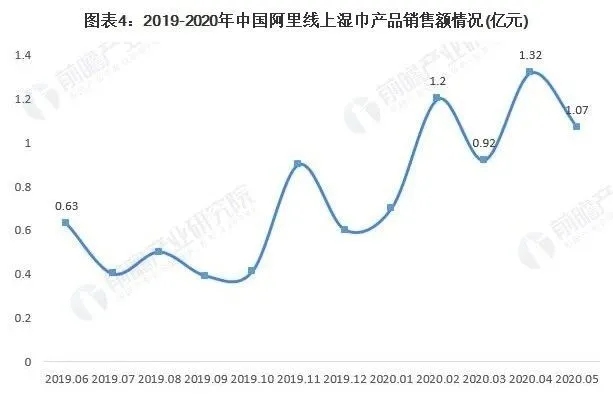 2020年疫情呈現(xiàn)爆發(fā)極大地刺激了濕巾的消費(fèi)需求,2020年1-5月,阿里濕巾線上銷(xiāo)售額均在1億元左右,2020年4月銷(xiāo)售額更是高達(dá)1.32億元,2020年2月環(huán)比增速達(dá)到113.63%。