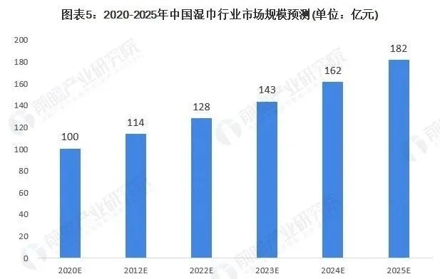 由此可見(jiàn)我國(guó)濕巾市場(chǎng)仍有巨大空間,我國(guó)經(jīng)濟(jì)積極向好,居民消費(fèi)能力及意愿不斷提升,企業(yè)不斷探索制造多元化的濕巾,且經(jīng)過(guò)疫情我國(guó)濕巾行業(yè)發(fā)展前景更為明朗,預(yù)計(jì)2025年市場(chǎng)規(guī)模有望達(dá)到182億元。