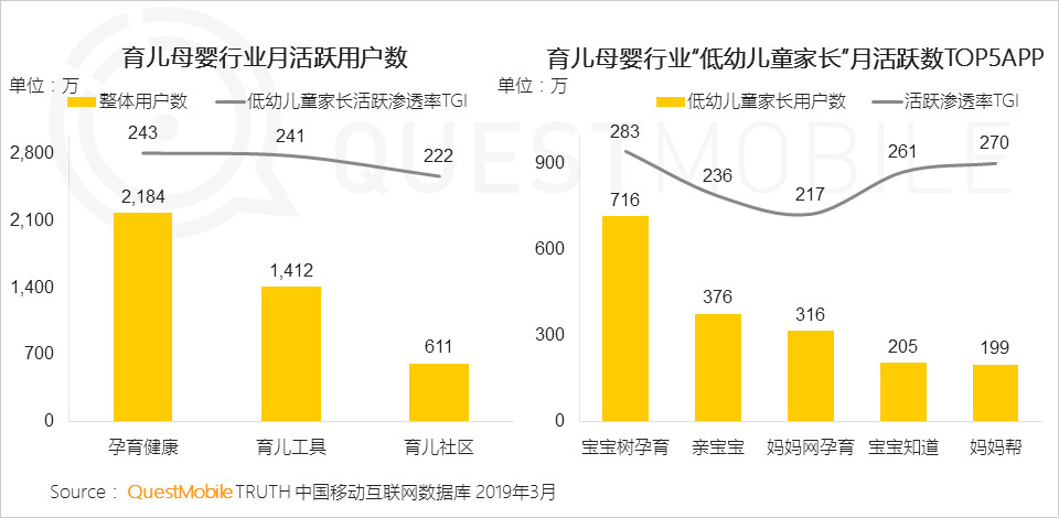 “低幼兒童家長”(泛指0-6歲家長人群)人群關(guān)注領(lǐng)域包括在線消費(fèi)、幼兒教育、育兒社區(qū)、親子旅游。2016年“全面二孩”政策實(shí)施以后,中國新生兒童數(shù)量經(jīng)歷了兩年快速增長后有所回落,學(xué)齡前兒童數(shù)量維持穩(wěn)定態(tài)勢,但二胎政策帶來人口利好,低幼經(jīng)濟(jì)價(jià)值凸顯,據(jù)QuestMobile數(shù)據(jù)顯示,目前中國0-6歲兒童人數(shù)約1億,0-6歲兒童消費(fèi)市場規(guī)模已超1.5萬億,“低幼兒童家長”用戶規(guī)??焖僭鲩L已經(jīng)接近2.7億,在中國家庭中,超八成的家長每年在孩子的教育方面支出均在5000元以上,“寶媽”是教育決策的主要決策者,也就是說,每年在那些呱呱哭叫的嬰幼兒的小手里,0-6歲的媽媽們足足攥著“真金白銀”。