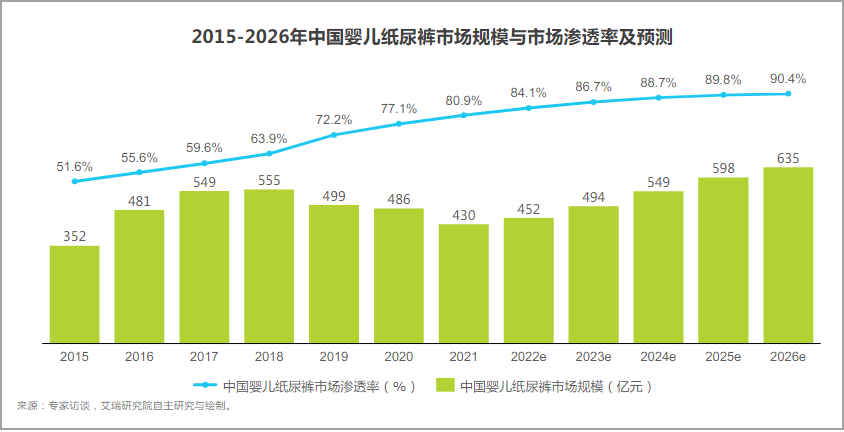 以嬰兒紙尿褲市場為例,該品類的市場滲透率從2015年的51.6%增加到2022年的84.1%,預計到2026將升至90.4%。