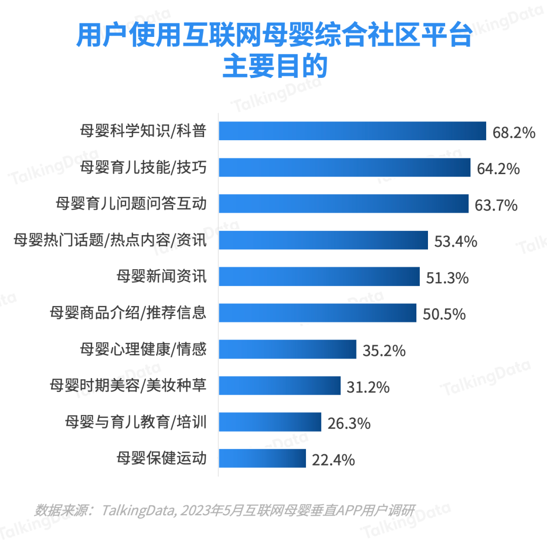 用戶使用母嬰綜合社區(qū)平臺(tái)主要是為了獲取母嬰科普信息、育兒技能和育兒話題互動(dòng)。