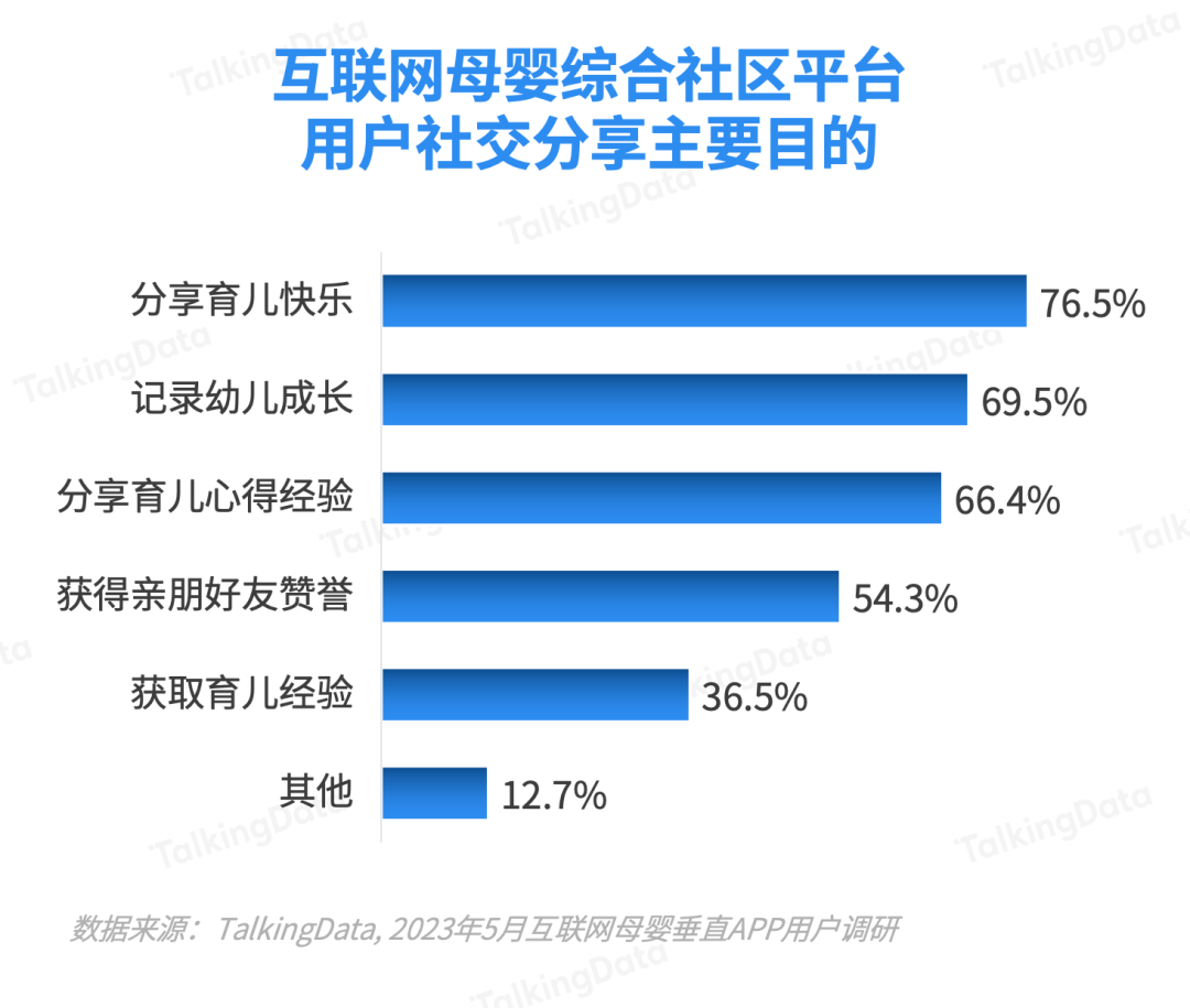 對(duì)于分享目的,超過7成用戶愿意分享育兒過程中的快樂和幸福,傳遞正能量;同時(shí),69.5%用戶是為了記錄孩子成長(zhǎng)的過程,66.4%的用戶是為了分享育兒心得經(jīng)驗(yàn)。