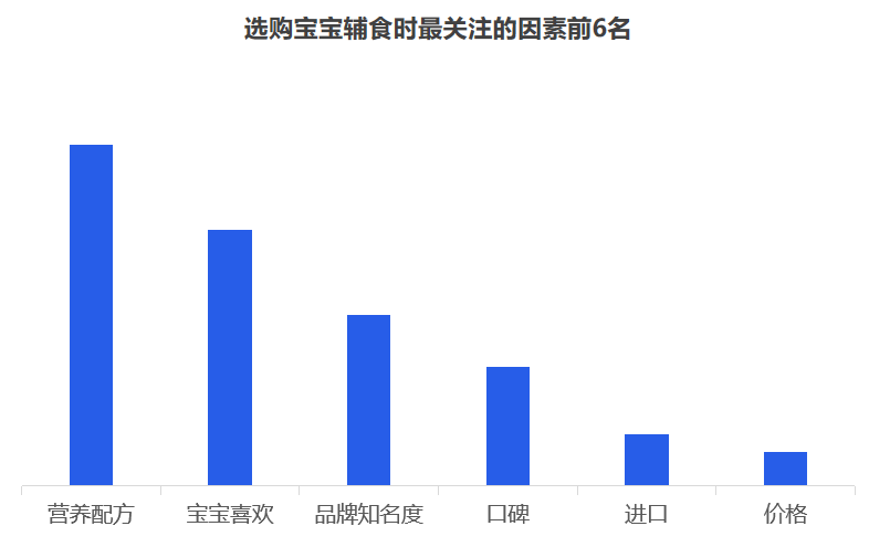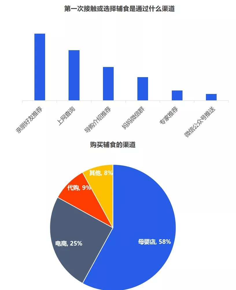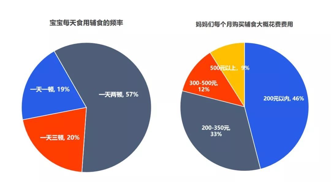 但是對于品牌而言,最重要的是洞察需求,一個好的洞察,一定是清晰揭示消費者的傾向,暗示了一個市場機會。究竟品牌入局輔食的機會有多大,媽媽們是如何看待輔食的? 從當(dāng)前的嬰幼兒用品的采購情況來看,媽媽負責(zé)嬰幼兒用品的采購,用戶占比超七成。奶爸也會經(jīng)常協(xié)助寶媽,參與到嬰幼兒用品的采購活動中,用戶占比為41.7%。 從近一年的百度指數(shù)來看,目前關(guān)注輔食最突出的地域是廣州、浙江、江蘇、山東、北京等,可見,當(dāng)前一二線城市的消費者對輔食的認知教育有所提高,但是低線城市的消費者對寶寶輔食的添加還不重視。 其次,從年齡段來看,“30-39歲”的消費人群對輔食的關(guān)注度最高,而在這其中,女性對輔食的關(guān)注度遠高于男性。 2019年母嬰行業(yè)觀察通過線上調(diào)研近10000人數(shù)的家長進行了輔食調(diào)查,其中80后占據(jù)24%,85后占據(jù)26%,90后44%,95后4%,對輔食的態(tài)度如下: 1、幾乎所有的媽媽都認為有必要給寶寶添加輔食,并且有一半的媽媽認為要在6個月時添加,而有32%的媽媽認為在6個月-1歲開始添加,還有16%的人在6個月以前就添加輔食。 2、大部分寶寶的輔食來源都是“購買與自制”相結(jié)合,而在購買輔食時,媽媽們購買最多的類型依舊是米粉,其次則是餅干、磨牙棒等小食品、營養(yǎng)面等。 3、互聯(lián)網(wǎng)與社交圈對媽媽的購買決策權(quán)的影響力較大,據(jù)調(diào)查顯示,媽媽們第一次接觸或選擇輔食大多都是通過親朋好友推薦,上網(wǎng)查詢等。當(dāng)然消費者在購買嬰兒輔食的渠道選擇上,其實與奶粉并無不同,為了保證產(chǎn)品的質(zhì)量和安全性,同時也為了可以得到育嬰專家的指導(dǎo)和幫助,消費者更傾向于在專業(yè)的母嬰用品連鎖店或主流電商平臺購買食品。 4、隨著85后、90后新生代父母的崛起,他們與父輩的消費觀念并不相同,不再執(zhí)著與于進口與價格等,而是開始關(guān)注是營養(yǎng)配方,重要的是寶寶喜歡。 5、對于寶寶而言,自添加輔食開始,都是與奶粉喂養(yǎng)相結(jié)合,目前超一半的寶寶每天食用輔食的頻率都是一天兩頓。當(dāng)然這在一定程度上也決定了每個月在寶寶的輔食上的花費是多少,從月消費來看,可以明顯看出200以內(nèi)的將近半數(shù),當(dāng)然也可以看出花費在300以上的有21%,可見,對于嬰兒食品這個特殊的品類,以及嬰幼兒這個特殊的消費人群,消費持續(xù)升級仍然明顯。近兩年來,嬰幼兒輔食高端化、有機化趨勢明顯。 近幾年來,越來越多的媽媽意識到輔食的重要性,隨著我國居民可支配的收入不斷提高,消費者投入了更多的關(guān)注給自己的孩子,作為寶寶的第二餐,消費者愿意投入更多費用,使用周期會不斷變長,且更注重輔食產(chǎn)品的品質(zhì)和質(zhì)量。可見隨著消費水平的提升,年輕父母對于對孩子的飲食質(zhì)量、飲食營養(yǎng)的投入更加重視,會更追求高附加值、高品質(zhì)的輔食,中國輔食市場會繼續(xù)高速發(fā)展。
