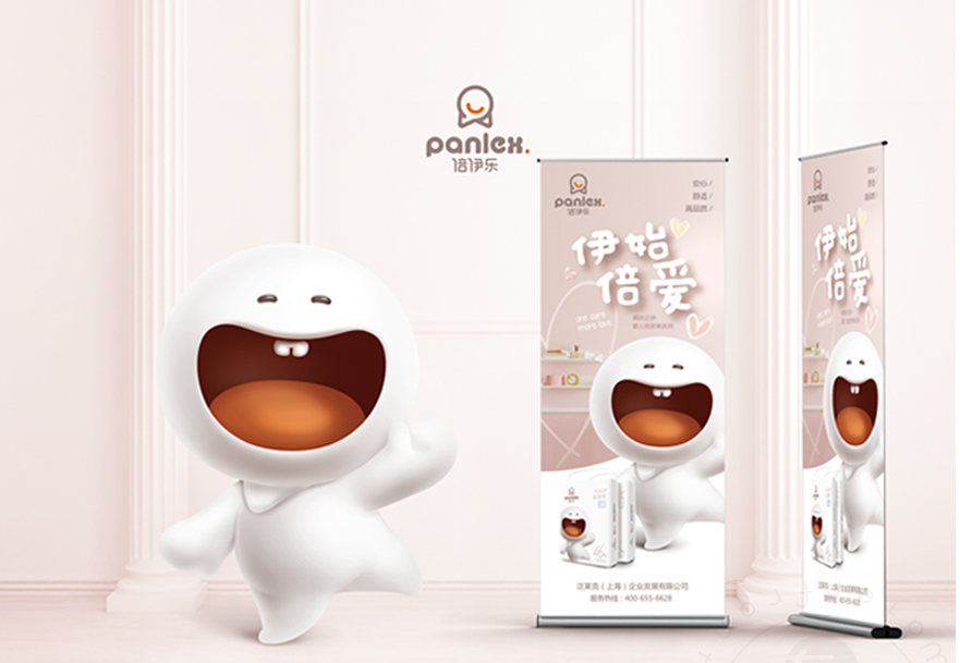 品牌視覺體系構建——以“倍伊樂”品牌個性為初構思路,純白童真的卡通IP塑造,極具識別性的輪廓造型,與品牌標志形成呼應,有效鞏固品牌核心視覺認知。可愛型IP契合于母嬰品牌的屬性,同時創(chuàng)造出屬于“倍伊樂”的視覺記憶點,讓品牌在品質感之外又多了幾分親切感,滲透著品牌對孩子的了解與關愛。
